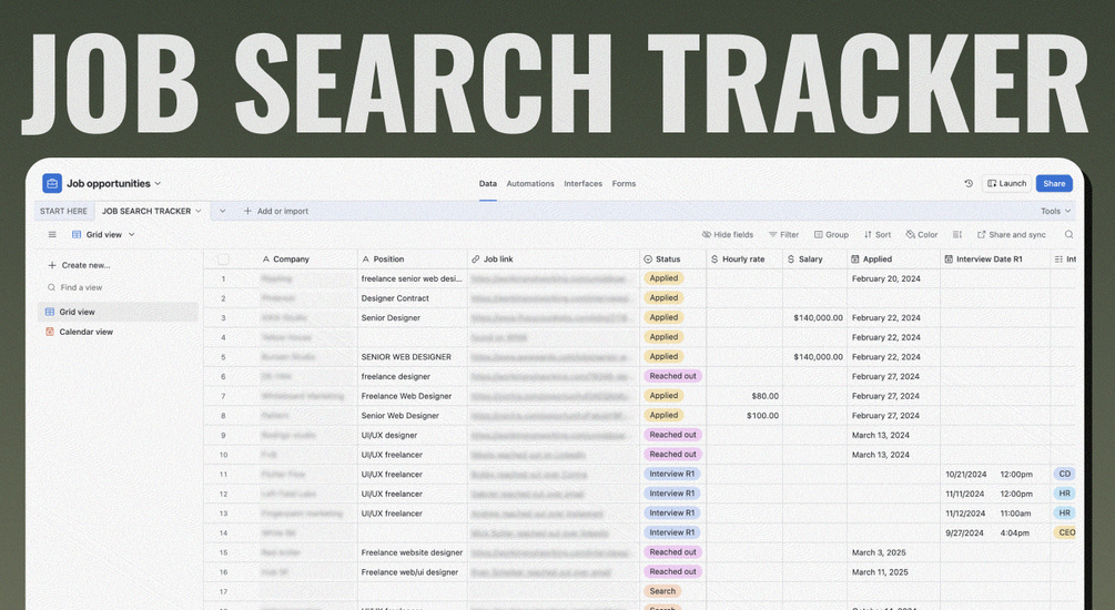 This Job Search Tracker helps you manage your entire job search in one place, from applications and interviews to follow-ups and offers.